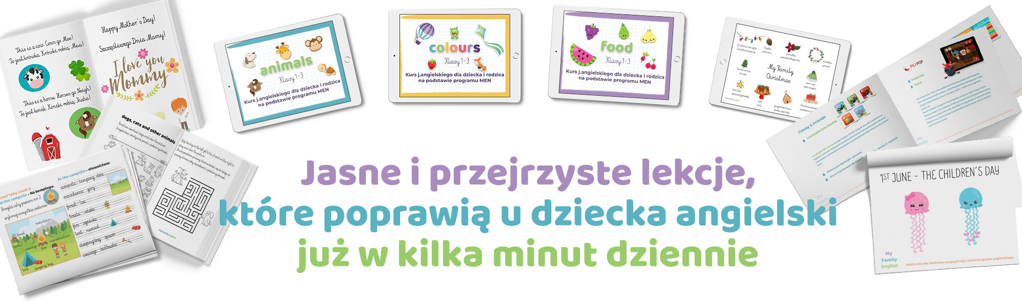 W Kursie My Family English otrzymasz różnorodne materiały: wideo, audio, kolorowe i czarno-białe Karty Pracy pdf do druku, fiszki do ćwiczenia słówek i mówienia z gotowymi propozycjami ćwiczeń – w całości opracowane według programu Ministerstwa Edukacji Narodowej.